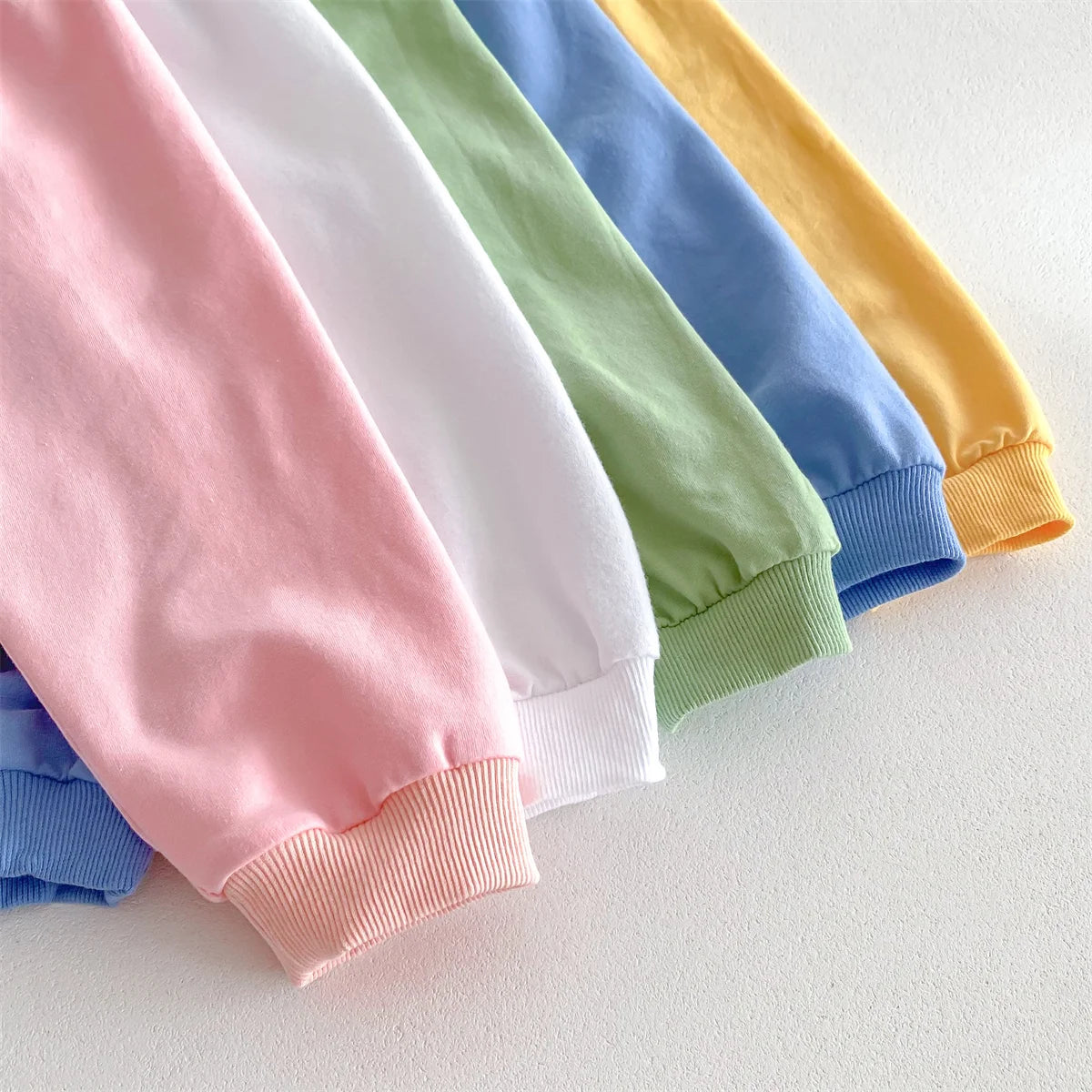 Adorable cotton outfit set featuring a cute printed sweatshirt paired with matching pants. Perfect for toddlers and young children, this two-piece ensemble combines comfort with playful style. Made from soft cotton-elastane blend, it's ideal for spring and autumn wear. True to size with full sleeves and a classic crew neck.