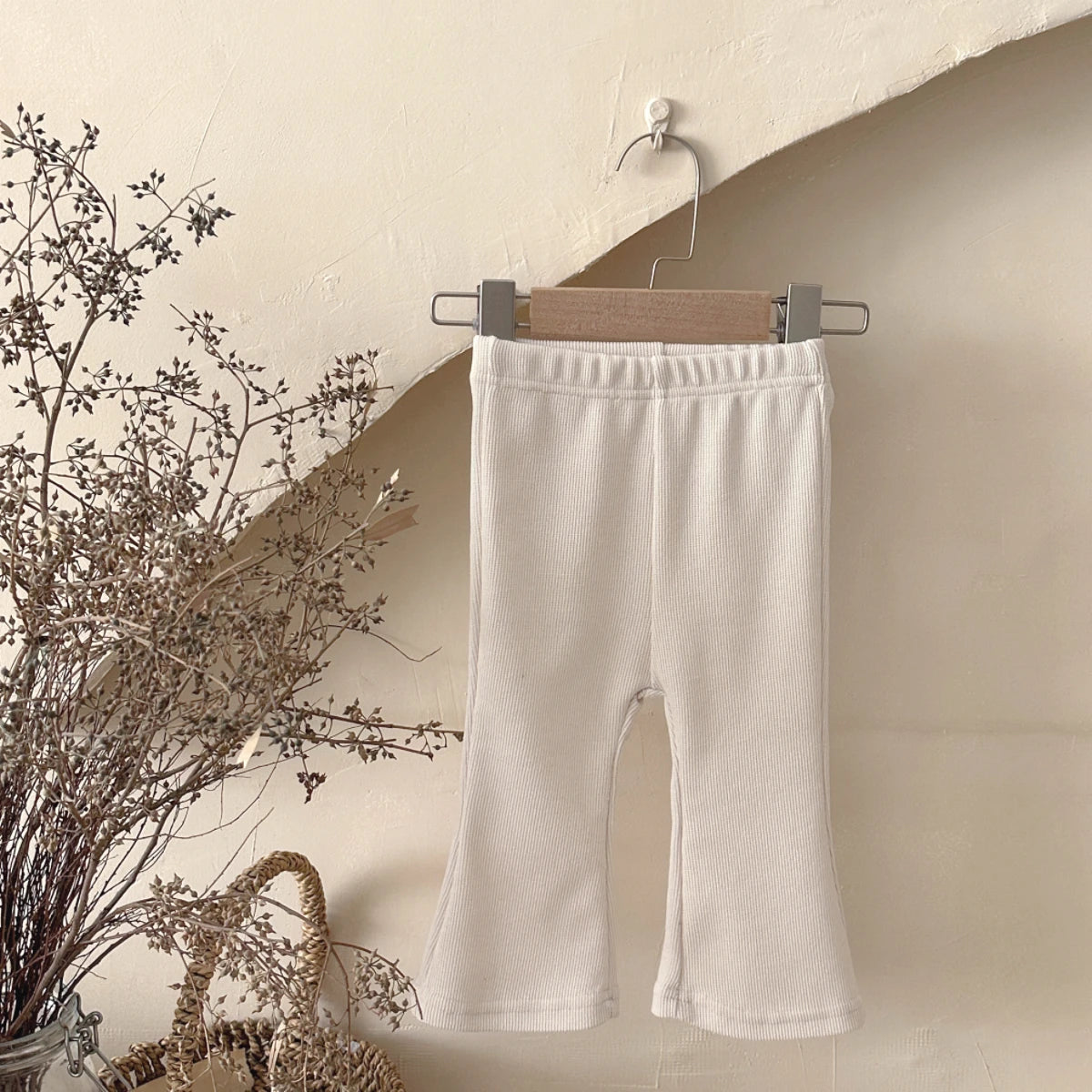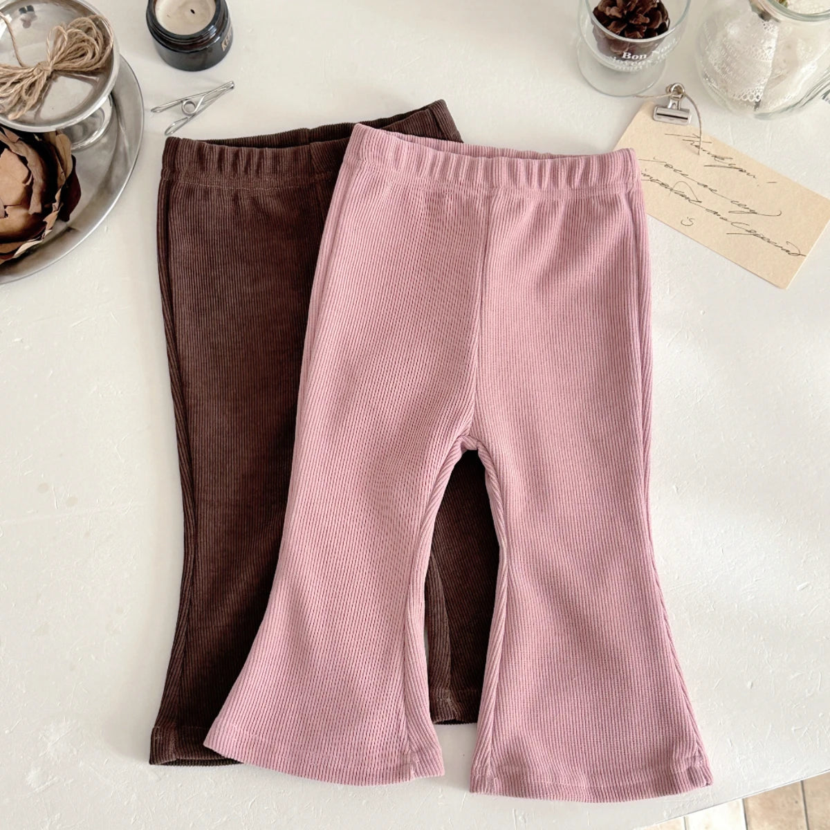Comfortable and stylish bell-bottom leggings designed for babies and toddlers aged 6 months to 3 years. Crafted with a soft knitted fabric, these casual pants feature an elastic waist for easy dressing and a relaxed fit perfect for active play. Machine washable for convenient care.