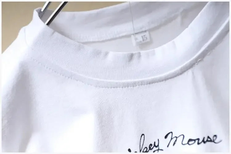 This two-piece summer ensemble combines a classic Mickey Mouse graphic tee with coordinating denim shorts, crafted from premium cotton for superior comfort and breathability. Designed for children ages 4-6, the set features a relaxed pullover silhouette with short sleeves and a true-to-size fit that requires no adjustments. The O-neck collar and regular sleeve styling provide timeless appeal, while the soft cotton construction ensures durability through active play and frequent washing. Ideal for warm-weather adventures, casual outings, and everyday wear, this unisex set delivers both style and practicality for growing children.