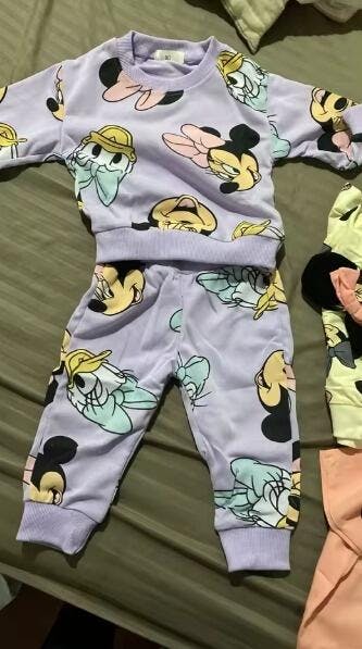 Adorable cotton outfit set featuring a cute printed sweatshirt paired with matching pants. Perfect for toddlers and young children, this two-piece ensemble combines comfort with playful style. Made from soft cotton-elastane blend, it's ideal for spring and autumn wear. True to size with full sleeves and a classic crew neck.