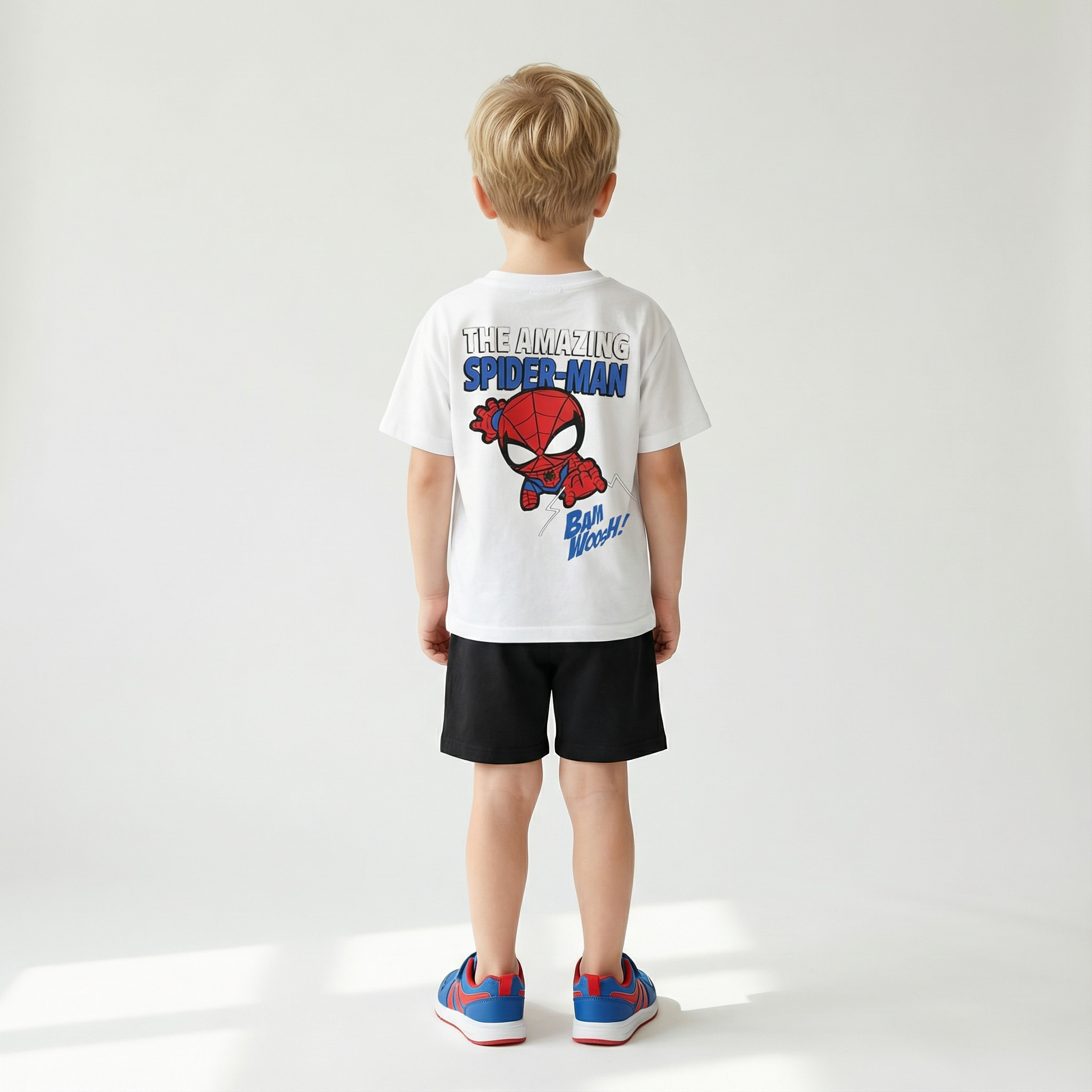Two-piece casual set for children, featuring a short-sleeve crewneck tee and matching shorts in soft cotton blend. Lightweight design ideal for warm weather wear. Simple pullover style with solid color construction for everyday comfort and easy dressing.