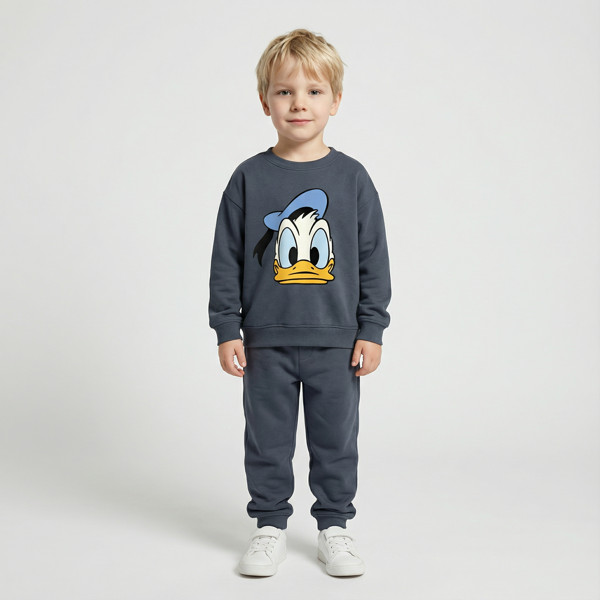 Adorable cotton outfit set featuring a cute printed sweatshirt paired with matching pants. Perfect for toddlers and young children, this two-piece ensemble combines comfort with playful style. Made from soft cotton-elastane blend, it's ideal for spring and autumn wear. True to size with full sleeves and a classic crew neck.