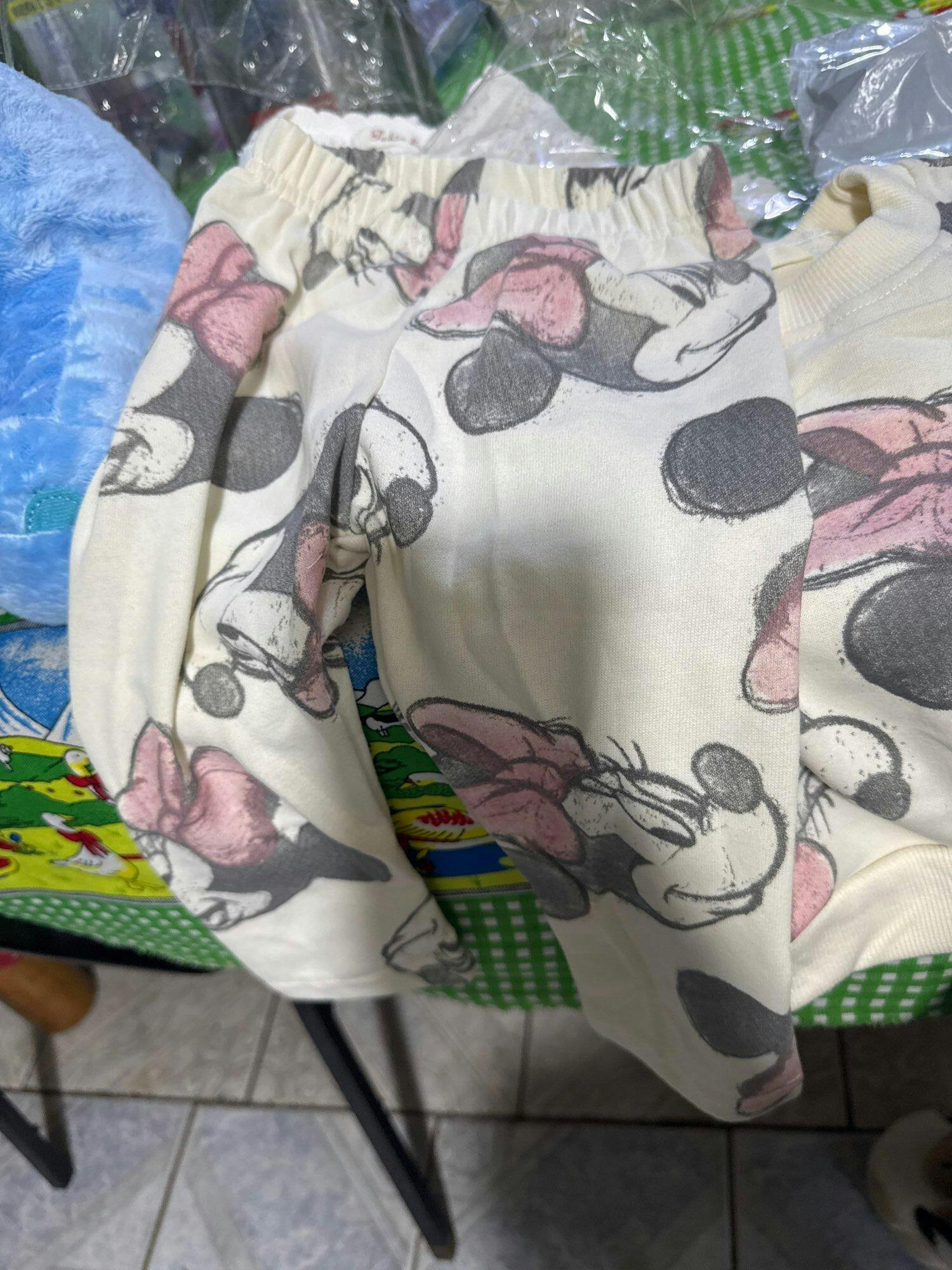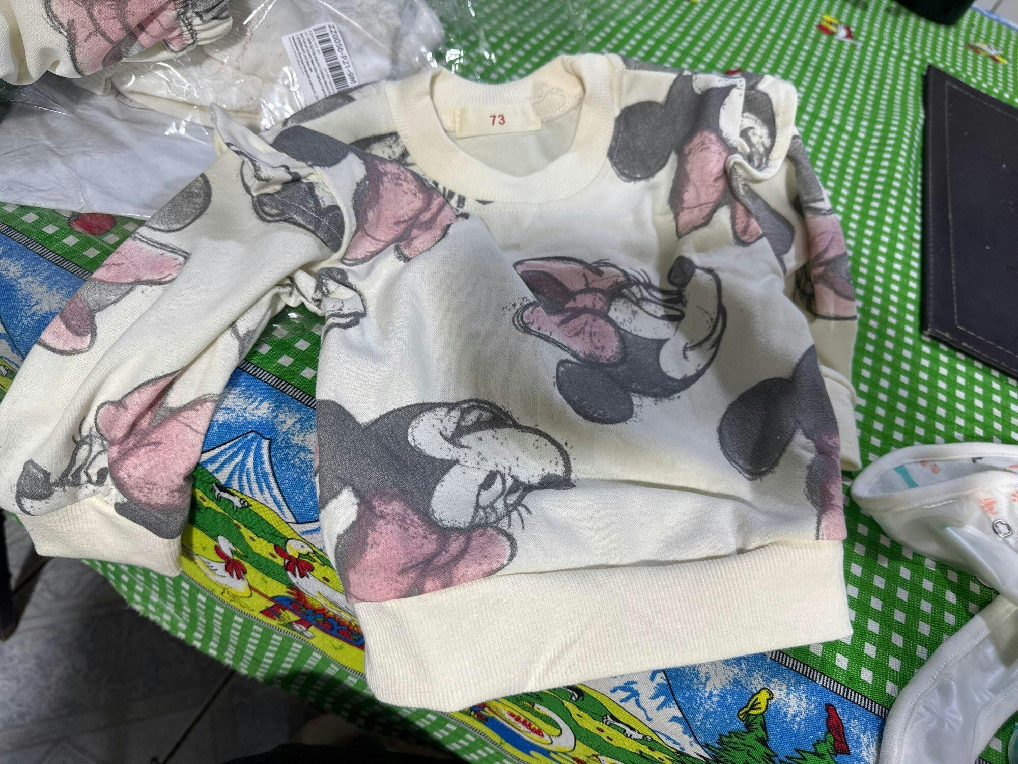 Adorable cotton outfit set featuring a cute printed sweatshirt paired with matching pants. Perfect for toddlers and young children, this two-piece ensemble combines comfort with playful style. Made from soft cotton-elastane blend, it's ideal for spring and autumn wear. True to size with full sleeves and a classic crew neck.