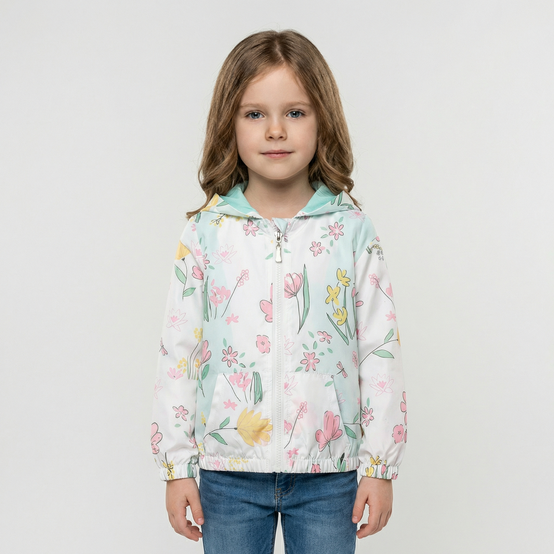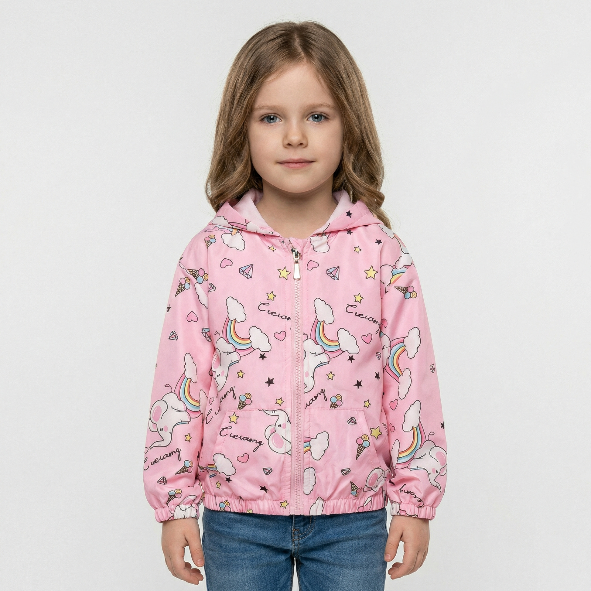 Girls' jacket combines comfort with playful style for spring and autumn wear. Crafted from heavyweight polyester with a cozy hooded collar, this casual outerwear features a full-length zipper for easy dressing. The charming print design appeals to children ages 2-7. True-to-size fit ensures a proper silhouette, while the durable construction withstands active play. Perfect for layering during transitional seasons.