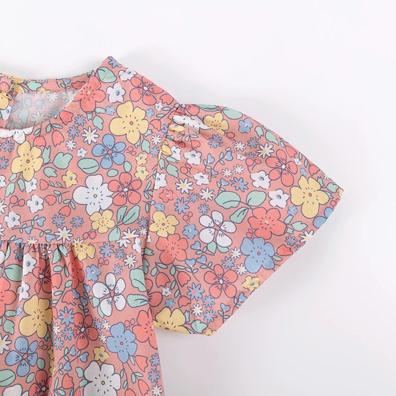 Summer tracksuit set for girls ages 2-7, featuring 100% cotton construction in a casual style. Includes coordinated t-shirt and shorts with charming cartoon rabbit print. True-to-size fit, lightweight knit fabric ideal for warm weather wear. Perfect for active play and everyday comfort.