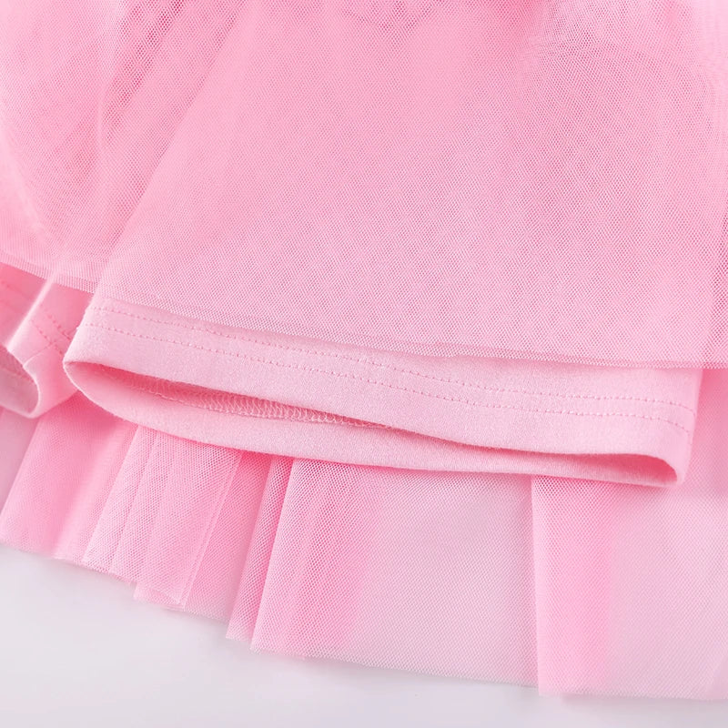 Summer tracksuit set for girls ages 2-7, crafted from 100% cotton for breathable comfort. Features a casual cartoon rainbow design with short-sleeve top and matching skirt. True-to-size fit, perfect for warm-weather play and everyday wear.