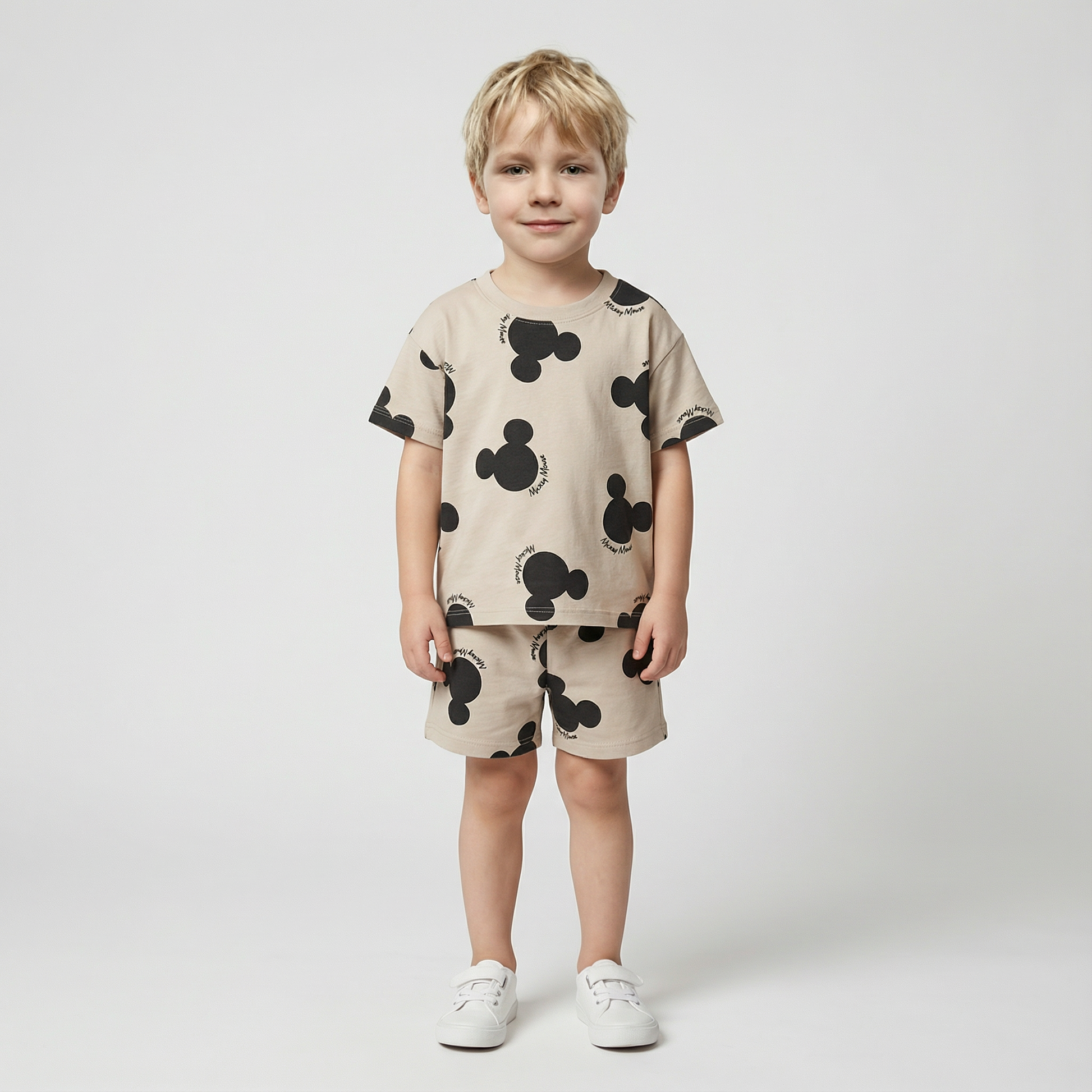 Two-piece casual set for children, featuring a short-sleeve crewneck tee and matching shorts in soft cotton blend. Lightweight design ideal for warm weather wear. Simple pullover style with solid color construction for everyday comfort and easy dressing.