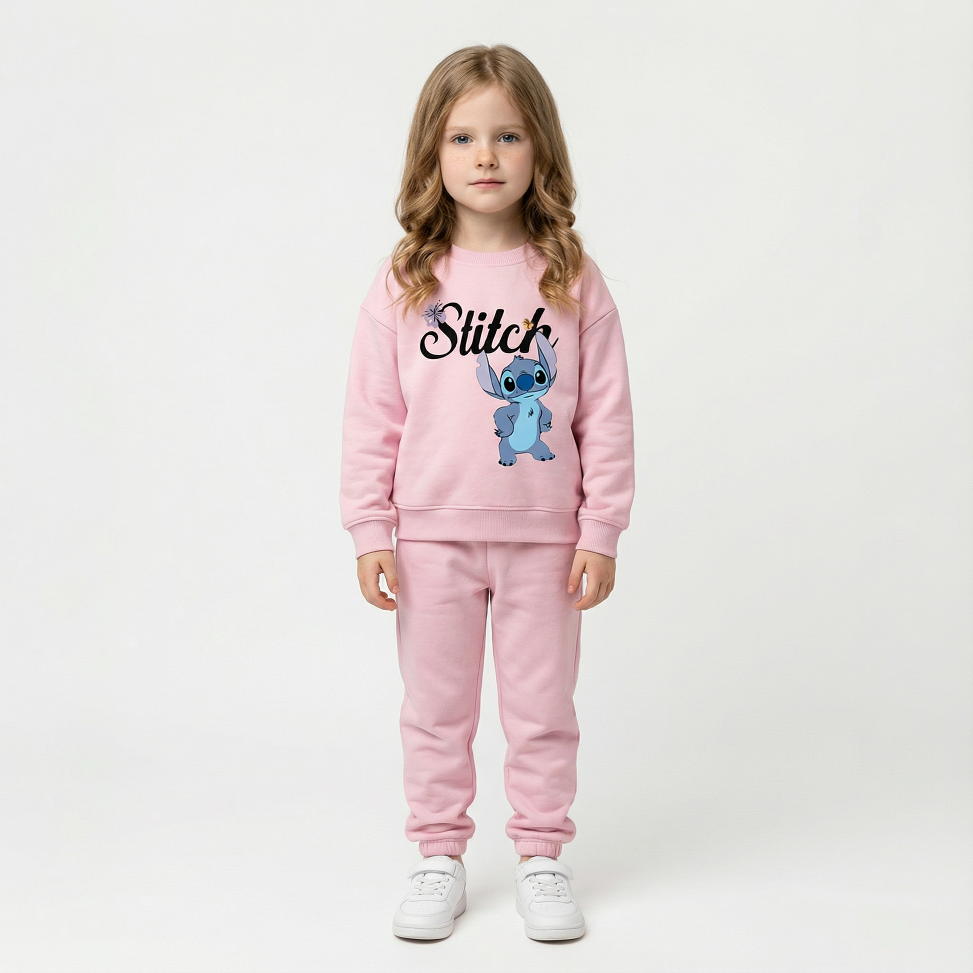 Adorable cotton outfit set featuring a cute printed sweatshirt paired with matching pants. Perfect for toddlers and young children, this two-piece ensemble combines comfort with playful style. Made from soft cotton-elastane blend, it's ideal for spring and autumn wear. True to size with full sleeves and a classic crew neck.