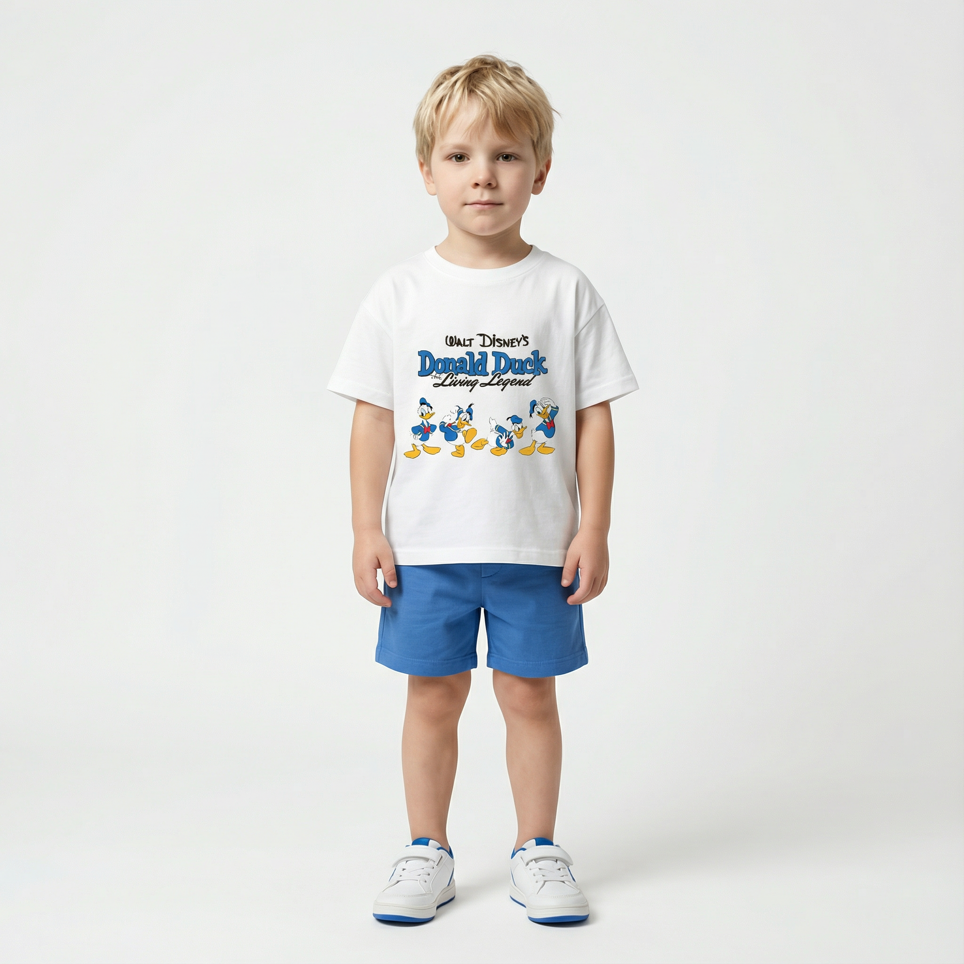 Two-piece casual set for children, featuring a short-sleeve crewneck tee and matching shorts in soft cotton blend. Lightweight design ideal for warm weather wear. Simple pullover style with solid color construction for everyday comfort and easy dressing.